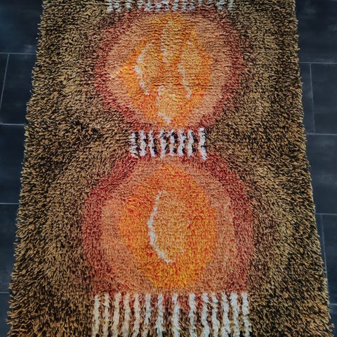 Ryijy on hyväkuntoinen, ei vanumista eikä hajuja.