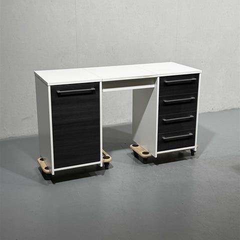 Hakusanat: työpöytä, vetolaatikot, työtila, musta pöytä, lisätasot