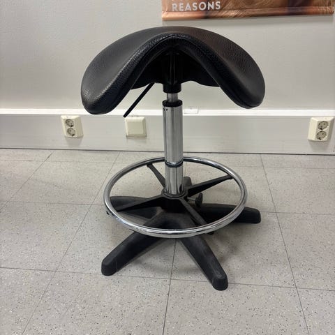 Elämää nähnyt satulatuoli. Toimii hyvin vaikka vähän käytönjälkiä. Haku kauniaisesta