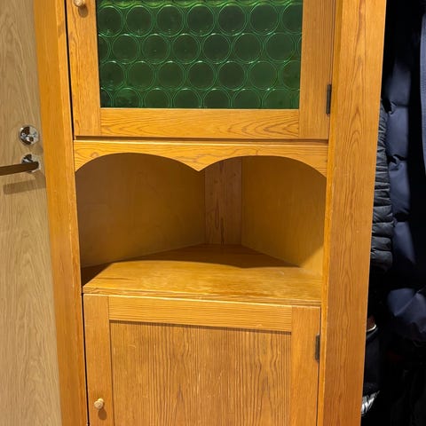 Hakusanat: puu, säilytys, kaappi, kulmakaappi, rustiikki, lasiovet