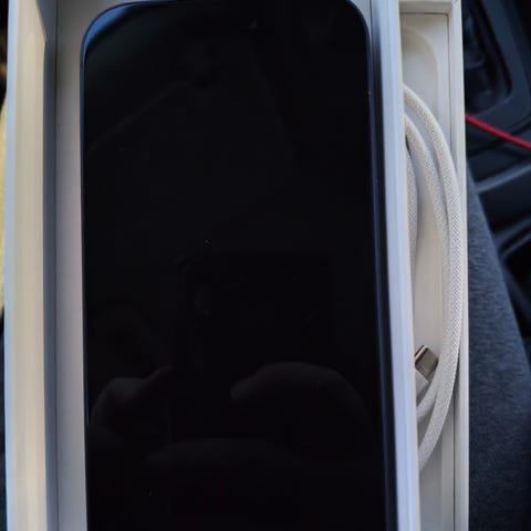 Apple iPhone 17 Pro -älypuhelin, jossa on 256 gigatavua tallennustilaa. Puhelimen takaosa on vaurioitunut ja näyttö on ehjä. Laite soveltuu korjattavaksi tai varaosakäyttöön.
