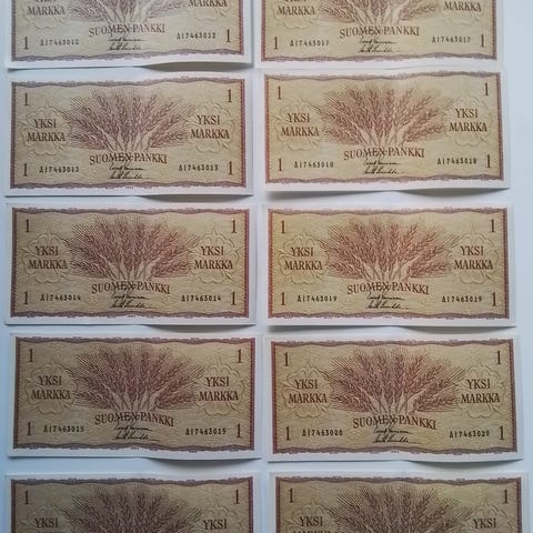 Myyntiin tarjousten perusteella 100 50 20 markan setelit