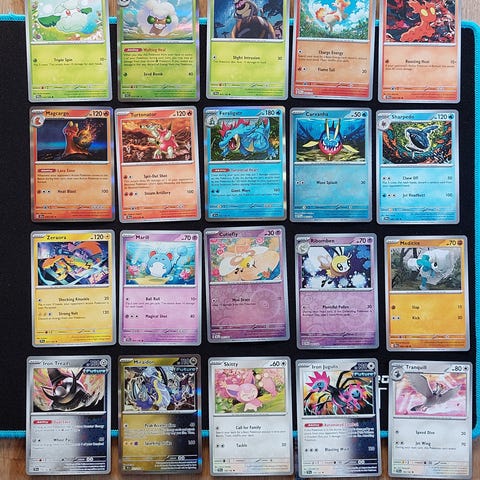 Myydään Stellar Crown Pokemon kortteja 10kpl. Hinta yhteensä 5,50e tai yksittäin ostettuna hinnat alla.