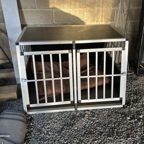 Tukeva, mutta silti suht kevyt koirankuljetus häkki. Jäi meille tarpeettomaksi, joten joutaa sitä enemmän tarvitsevalle. Ollut Ranskanvesikoira uroksella käytössä ja on palvellut hyvin.