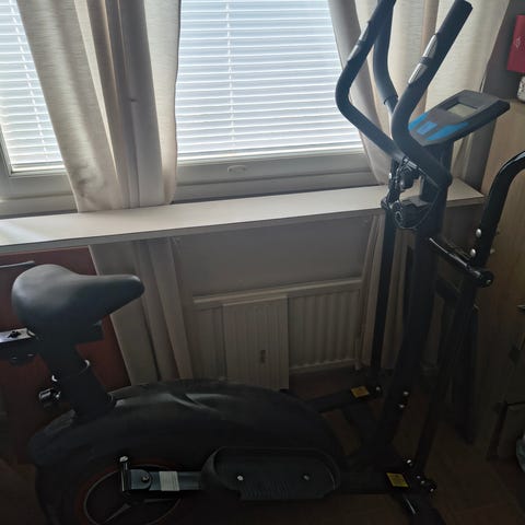 Kettler Axos crosstrainer, joka on kuntopyörän ja juoksumaton yhdistelmä. Laite sisältää digitaalisen näytön, jossa näkyvät nopeus, aika, matka, kalorit, syke ja muut harjoitustiedot. Sopii kotikäyttöön sisäliikuntaan.