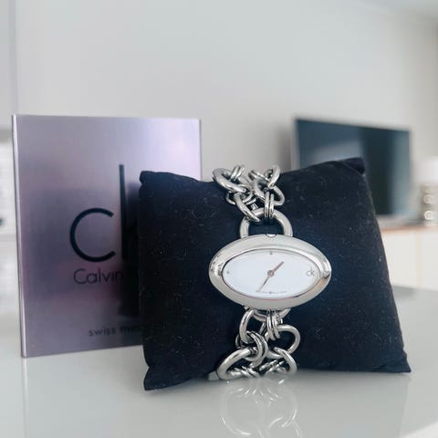 Hyvä ja tyylikäs rannekello. Pientä naarmua rannekkeessa. Patteri melko uusi, toimii loistavasti.