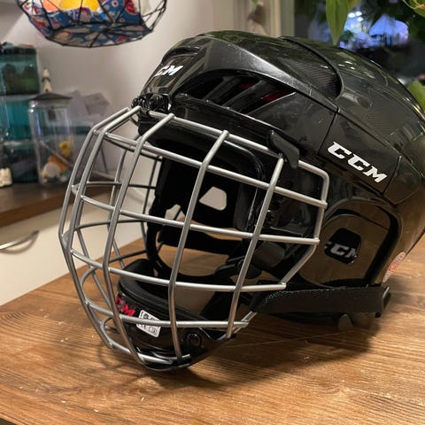 Myydään lasten M-kokoa oleva kypärä ristikolla.