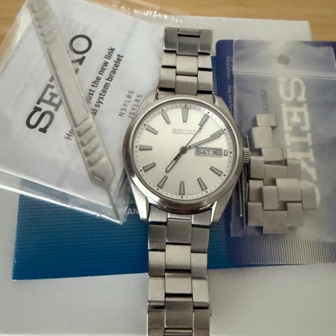 Mukana tulee mm. alkuperäiset Seiko-kotelot, takuutodistus ja kuitti. Viimeisessä kuvassa näkyvissä kaikki hintaan sisältyvät.