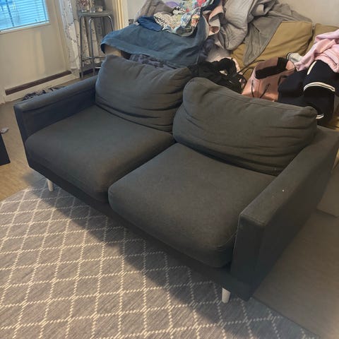 Kahden hengen sohva ylimääräisenä, ollut vieras huoneessa. Siistissä kunnossa ja ehjä. Jyskistä ostettu, malli egense.
