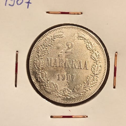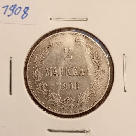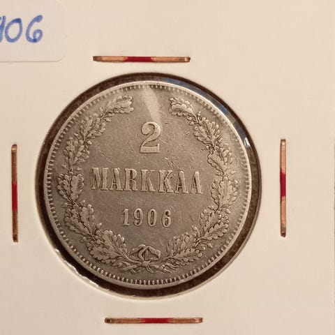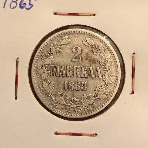 Myynnissä kuvan 2 markan kolikko vuodelta 1866.