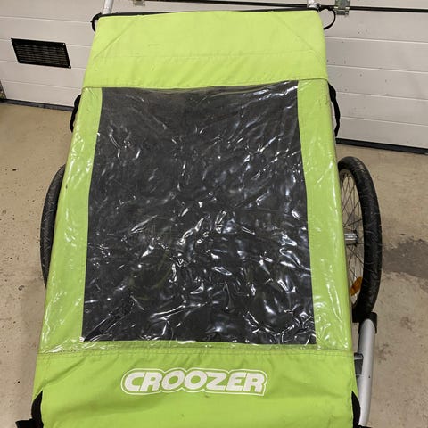 Lasten pyöräkärry, jossa on sininen ja musta väri. Kärryyn mahtuu kaksi lasta, ja siinä on 5-pistevaljaat turvallisuutta varten. Painoraja on 40 kg. Varustettu universaalilla kiinnikkeellä pyörään kiinnittämistä varten.