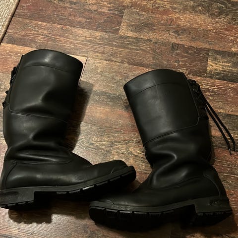 Villavuori, vesikestonahkaa, koko iso 44, kärjissä hieman kulumaa mutta ihan ehjät on. Rasvattu säännöllisesti.