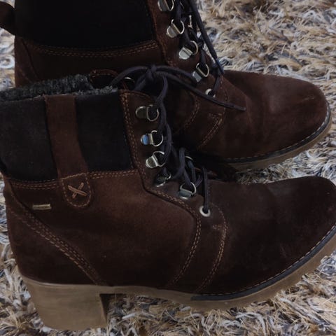 Grip+ pohjalla.Pomar talvikengät koko 40 mustaa pintanahkaa.Nilkkapituiset saappaat, joissa nauhakiinnitys ja sivuvetoketju. Sopivat monenlaiseen käyttöön. Muuten hyvät, mutta vaativat mustaa plankkia.