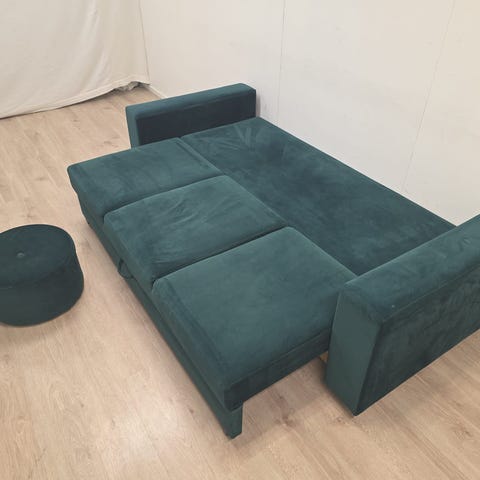 Sohvassa vuodemekanismi, jota helppo käyttää ja alla on säilitys tilää