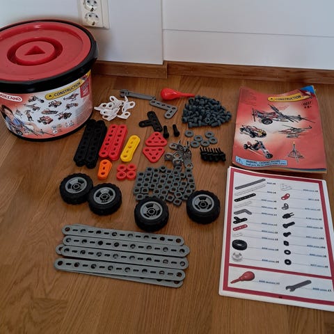 Meccano rakennussarja sisältää erilaisia puu- ja muoviosia, ruuveja, muttereita ja ohjeet useiden erilaisten mallien kokoamiseen. Sarja soveltuu rakenteluun ja teknisten taitojen harjoitteluun.