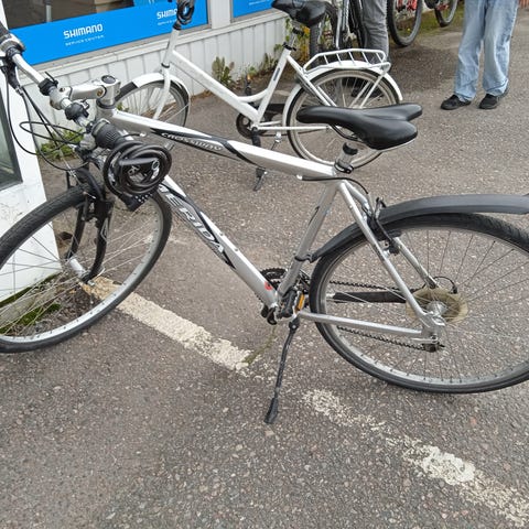 Sarda pyörä, vaihteeton. Jäänyt käyttämättömäksi. Korit edessä ja takana. Vaatii öljyn ja hetkistelyn