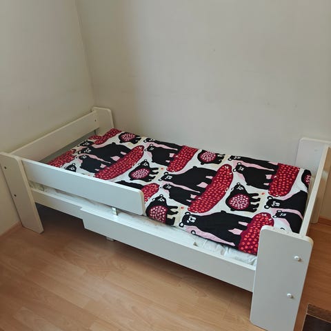Myydään kaksi hyväkuntoista Unipuun jatkosänkyä uusien tieltä. Molemmat siistejä ja ehjiä, vain normaalia käytön jälkeä. Yleisilme erittäin hyvä.