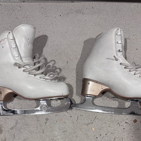 Edea lasten luistimet, koko 33, valkoinen väri. Luistimet on tarkoitettu taitoluisteluun. Terät ovat hyvässä kunnossa.