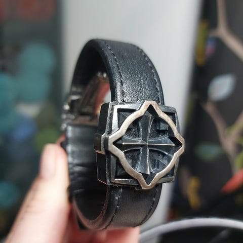 Lumoava sarjan nahkainen /hopeinen rannekoru.