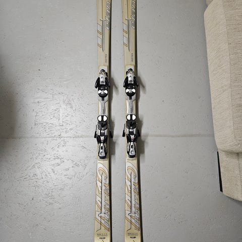 Muoveissa olevat uudet Elan Monoblock SCP laskettelusukset, pituus 183 cm, väri sininen.