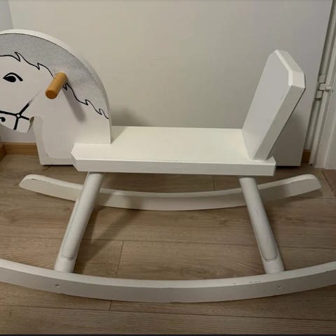 Myydään käytetyssä kunnossa oleva puinen keinuhevonen. Kulumaa löytyy esim. toinen kuva.