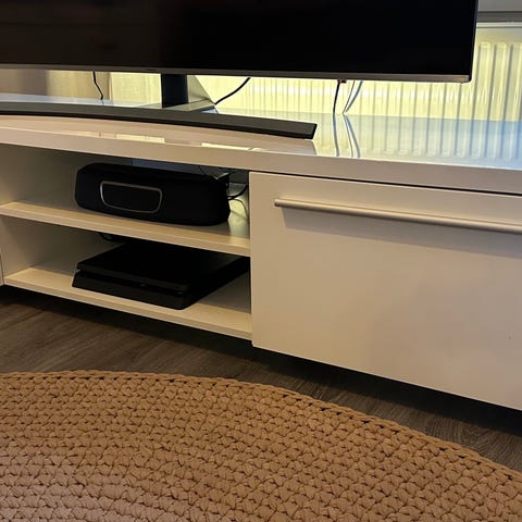 Siisti tv taso kahdella laatikolla. Harmaa/valkoinen.