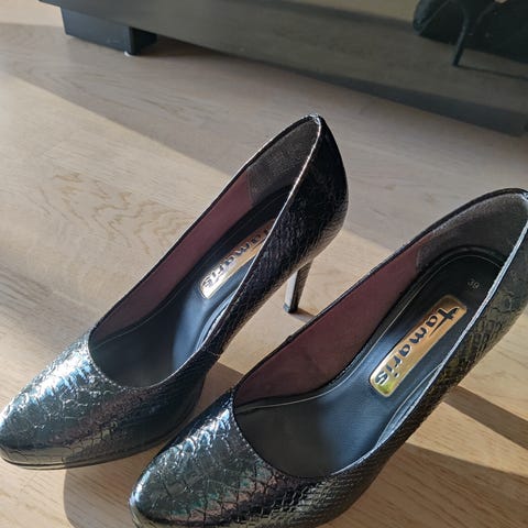 Tyylikkäät, klassiset mustat korkkarit. Pehmeä pohjallinen mahdollistaa pidemmänkin seisoskelun. Kahdet juhlat olen näillä vetänyt, kunto on moitteeton.
