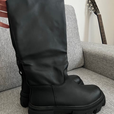 Myydään uudet saappaat. Valmistettu aidosta mokkanahasta ja turkiksesta.pohjallinen 24 cm.