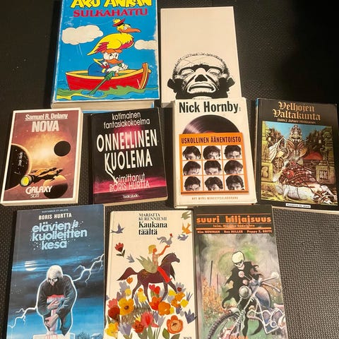 Joissain kirjoissa hintalappuja, näkyy kuvissa. Tunkeutujan pölysuoja hieman elämää nähnyt reunoista. Aku Ankan kunto lähempänä kohtalaista, sillä takakannen alareuna on saanut kosteutta.