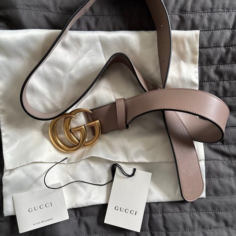 Gucci vyö 90 cm. Suutarillä teetetty 2 lisä reikää jotka vähä vinossa. Sopii 85 ympäryksiselle nyt myös. Mukaan fullset. Voin postittaa.