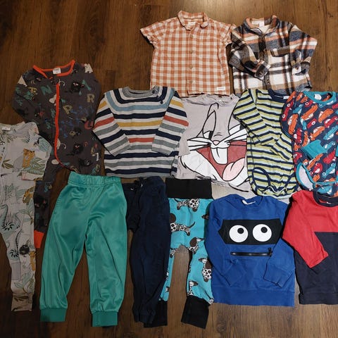 86 koon vaatepaketti. Seassa 92 koon vaatteita lapultaan, mutta meillä käytetty koossa 86.