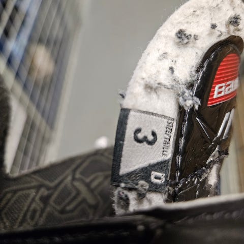 Vanhat mutta asiansa toimittavat luistimet. Koko ei tiedossa, sisäpohja ei irronnut mutta mitta noin 26,5cm.