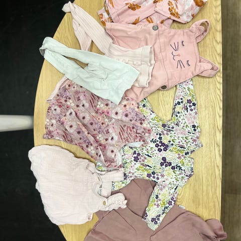 68 koon vaatepaketti. Mukana muutama 74 koon vaatepaketti lapultansa näistä kuva. Käytetty meillä pääasiassa koossa 68. Housuissa lisäksi kahdet 74 koon housut lapultansa, mutta samankokoiset ovat kun kahdet muut lahkeiltaan.