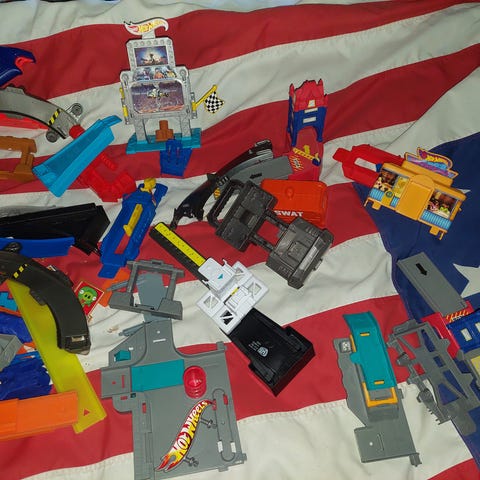 Pyöritettävä pysäköintilaitos, josta lähtee hyppyrimäki. Paljon leikitty.
