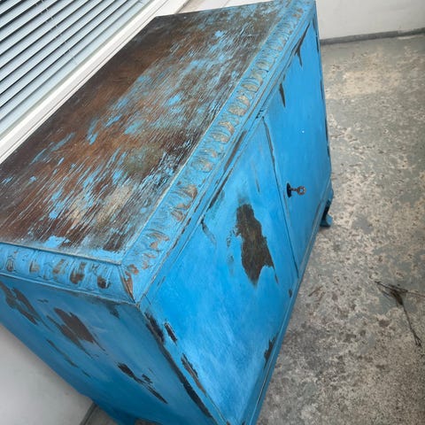 Annetaan tarjoiluvaunu, ollut käytössä kukkapöytänä sekä tasona kahvinkeittimelle. Puu käsittelemätöntä, joten pinta tästä syystä kärsinyt. Voi saada hiomalla ja maalaamalla siistimmäksi!