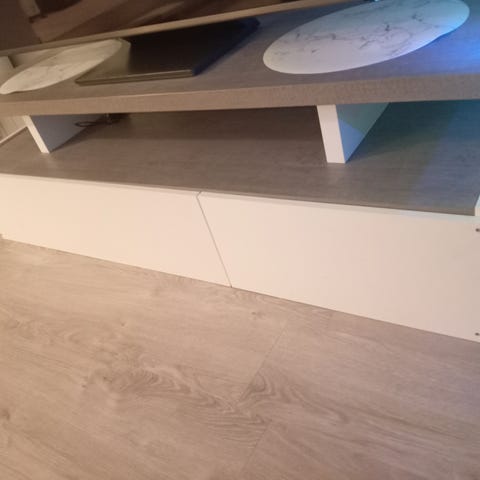 Tilavat kaapit ja avoin keskiosa tarjoavat hyvin säilytystilaa elektroniikalle ja muille tarvikkeille.