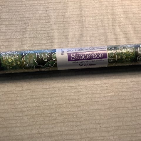 Myydään kolme kokonaista ja yksi avattu rulla kaunista vihreäsävyistä Kåbergs-tapettia.