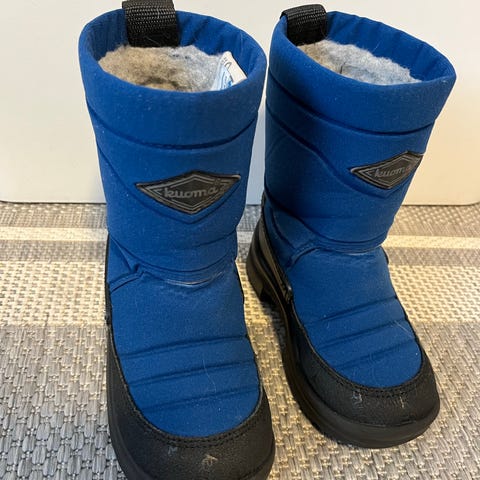 Kuoma lasten talvikengät, koko 26, sininen väri. Kenkien materiaali on suunniteltu kestämään kylmiä olosuhteita ja tarjoamaan lämmikettä lapsen jaloille.