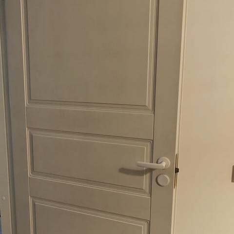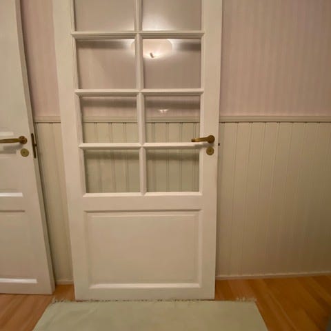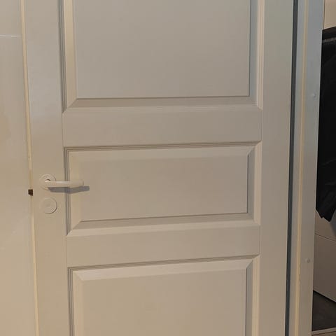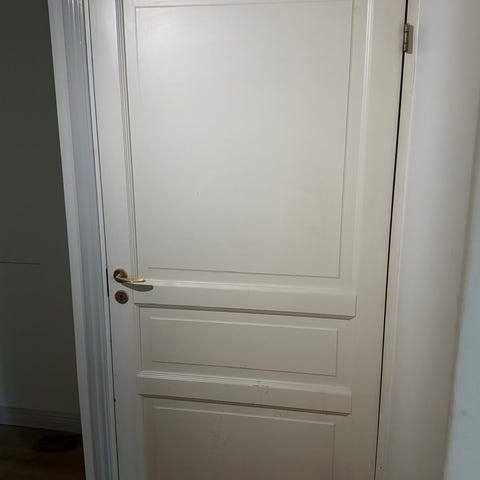 Valkoinen Jeld-Wen roiskevedenkestävä sisäovi. Kahva ja lukitus mukana.