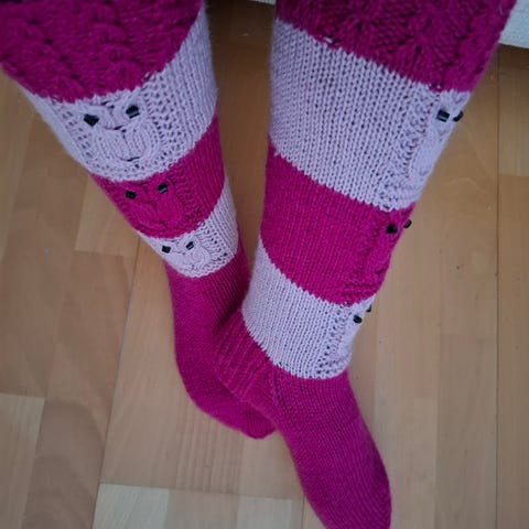 Uudet kädinkudotut punavalkoiset villasuat kokoa 38/40. Vahvistettu kantapää.