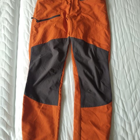 Kolmet hyväkuntoiset, käytetyt housut koossa 146/152. Merkeiltään harmaansävyiset WOXO, oranssiraitaiset Lindex ja vihreät Jonathan.