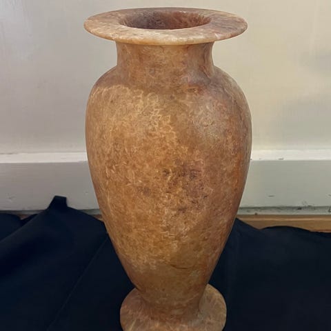 Suuri, hyväkuntoinen ja ehjä lattiaruukku. Materiaali keramiikkaa. Upea väritys/lasitus. Korkeus 50 cm. Viimeisessä kuvassa Siiroisen suuri Old King Cole-boolimalja antamassa mittasuhteen, kuinka suuri lattiaruukku kyseessä.