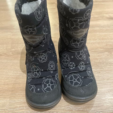 Kuoma lasten talvikengät tytöille. Kengissä on pinkki väri ja sydänkuviointi.