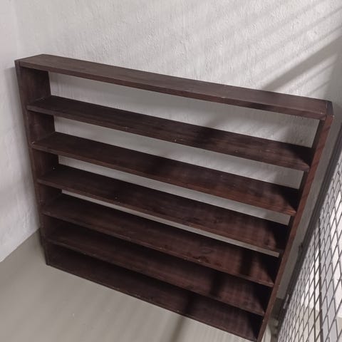 Valkoinen hylly. Korkeakiilto , metallijalka.