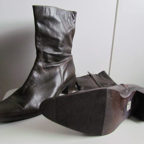 Nahkasaappaat, koko 41, musta väri. Saappaissa on vetoketju ja koristeellinen solki. Materiaali on nahkaa. Sisäpuoli myös nahkaa. Uudet, hintalappu vielä paikoillaan, kanta 4cm.