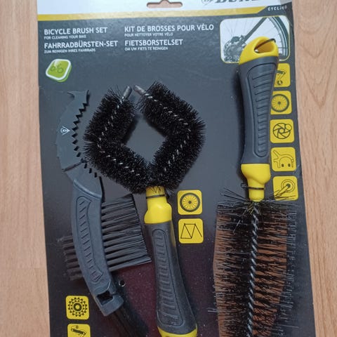 Jonkinlainen harja pyörän huoltoon, veikkaisin joustokeulojen putkille, mutta kyllä tuolla kaikki putket saa putsattu. Käyttämätön.