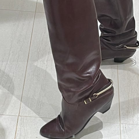 Kuvan mukaiset erittäin siistit naisten nahkasaappaat. Jalkaterän ulkopituus 27 cm. Koko 39-40,