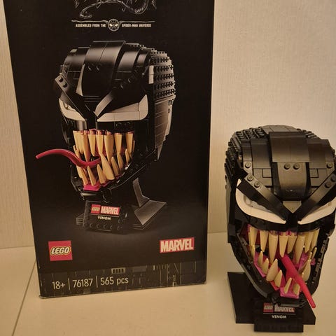 Tästäpä hyllyssä koristeena ollut lego venom pää. Laatikkoa tai ohjekirjaa ei ole, jos tuote postitetaan niin varaudu siihen että välttämättä osat eivät pysy kiinni ottaen huomioon postin pakettien käsittelyn. Kasaus ohjeet löytyvät varmasti netistä, saa tarjota.