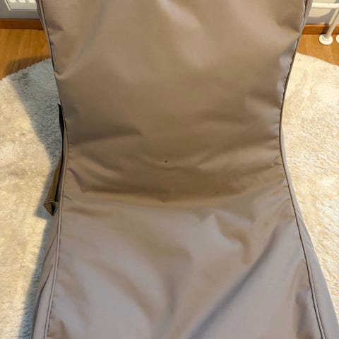 Fatboy säkkituoli sisä ja ulkokäyttöön. Käytetty sisällä ja parvekkeella. Väri harmaa, pituus 180cm, leveys 134cm.