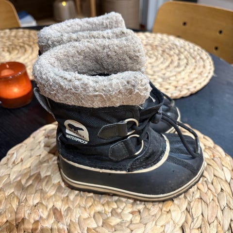 Siistit talvikengät, koko 27. Kengissä on vedenpitävä pohja ja sisällä irrotettava vuori. Vain nouto.